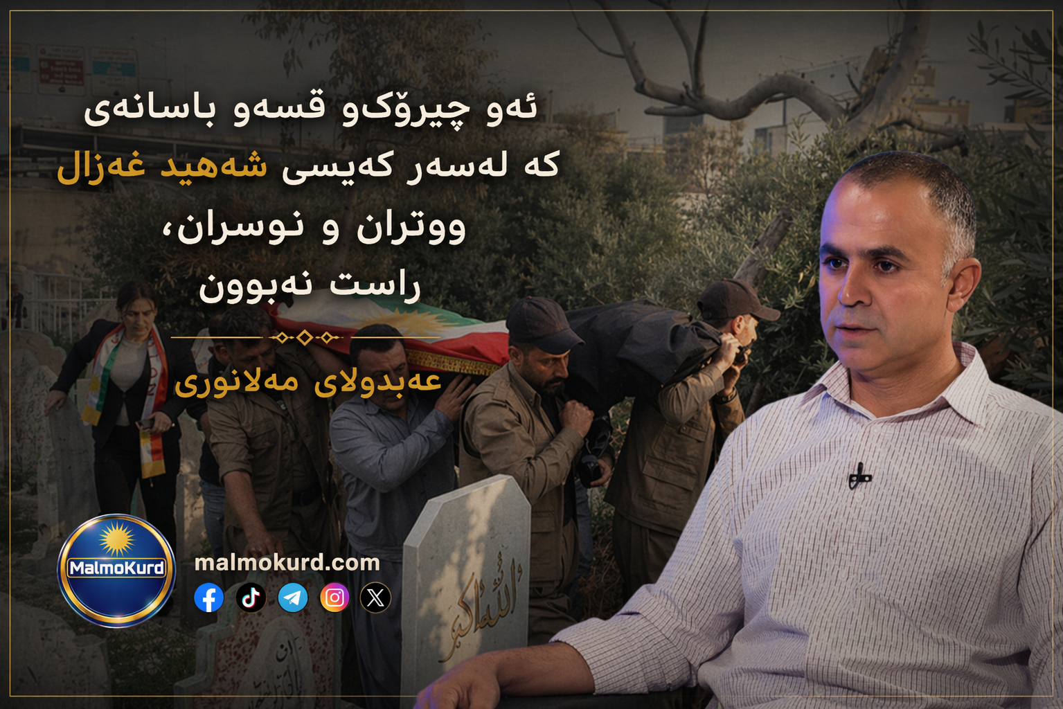 لەمەڕ کەیسی شەهید (غەزال مەولان)، پرسیارو گومان، لەسەر بێدەنگی خەڵکێکی زۆر دروستکرا؛ لەسەرئەوەی بۆ لەپرسی هێرش بۆسەر ڕۆژئاڤا خەڵکی سلێمانیو چالاکوانەکان هەڵوێستیان هەبوو، ئەی بۆ لەکەیسەکەی غەزالی شەهید، بێهەڵوێست بون؟! بەم هۆیەوە کوێرانەو بێڕەحمانە، سوکایەتیو بیڕێز...