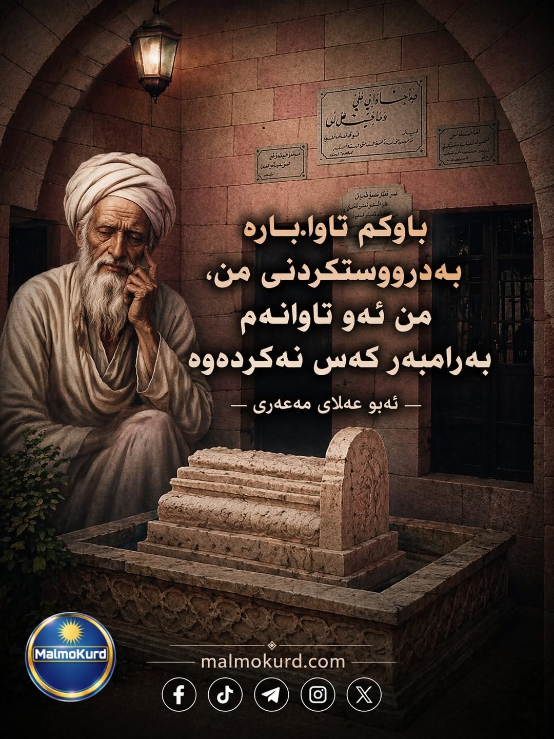 ئەمە ئەو دێڕەیە کە لەسەر گۆڕی فەیلەسوف و شاعیری عەرەب" ئەبو عەلای مەعەری" نووسراوە.